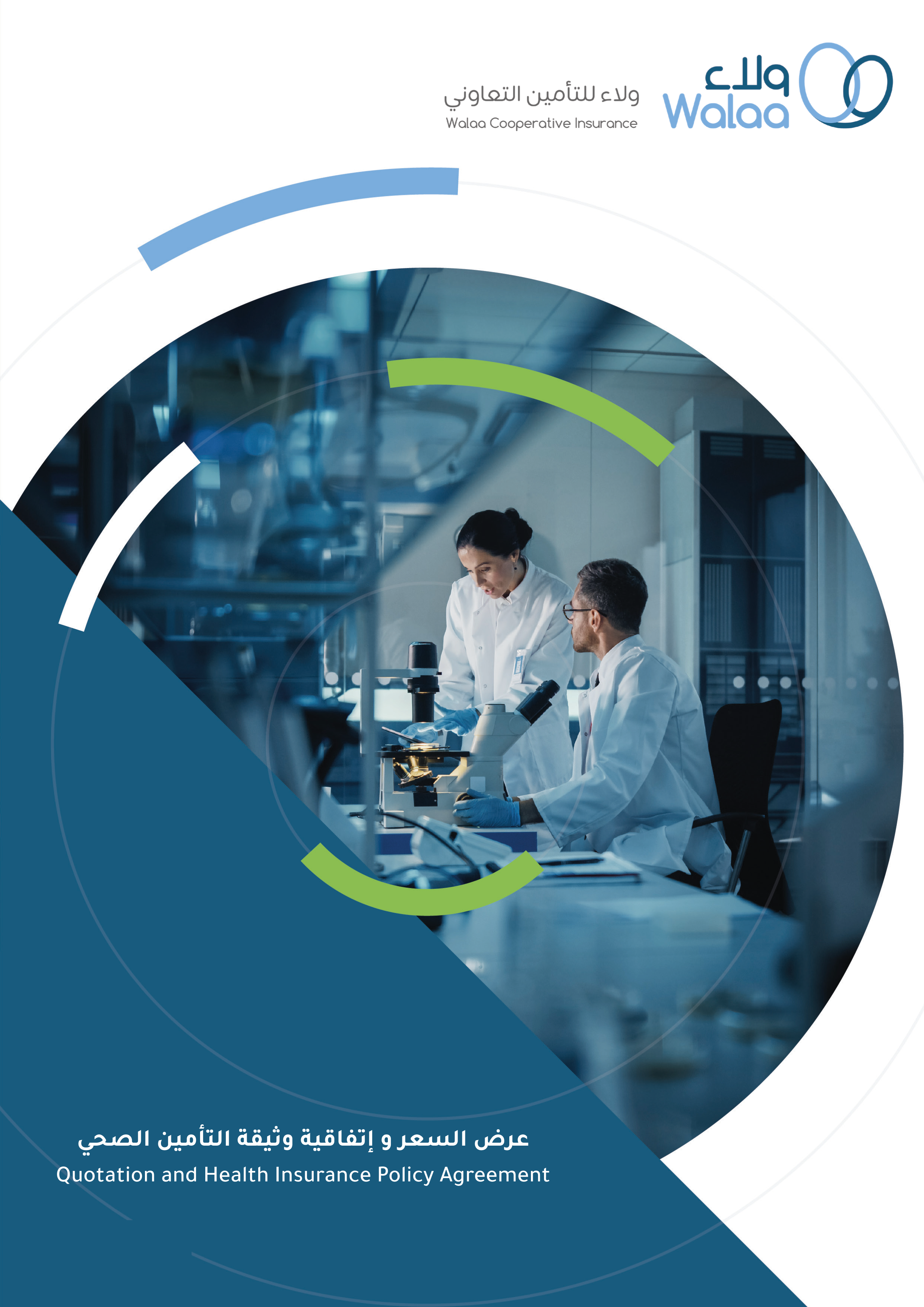 ننشكرك على اختيارك شركة ولاء للتأمين التعاوني، ویسرنا أن نقدم لكم عرضنا للتأمین الصحي والذي یتوافق مع الوثیقة الصادرة عن هيئة التأمين ، و نأمل أن یحوز عرضنا على رضاكم ، كما یسرنا الرد على جمیع الاستفسارات والاقتراحات التي قد ترونھا بعد مراجعتكم للعرض مؤكدین لكم حرصنا الدائم على تقدیم أفضل الخدمات.